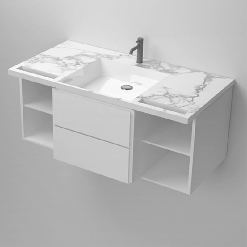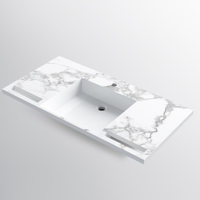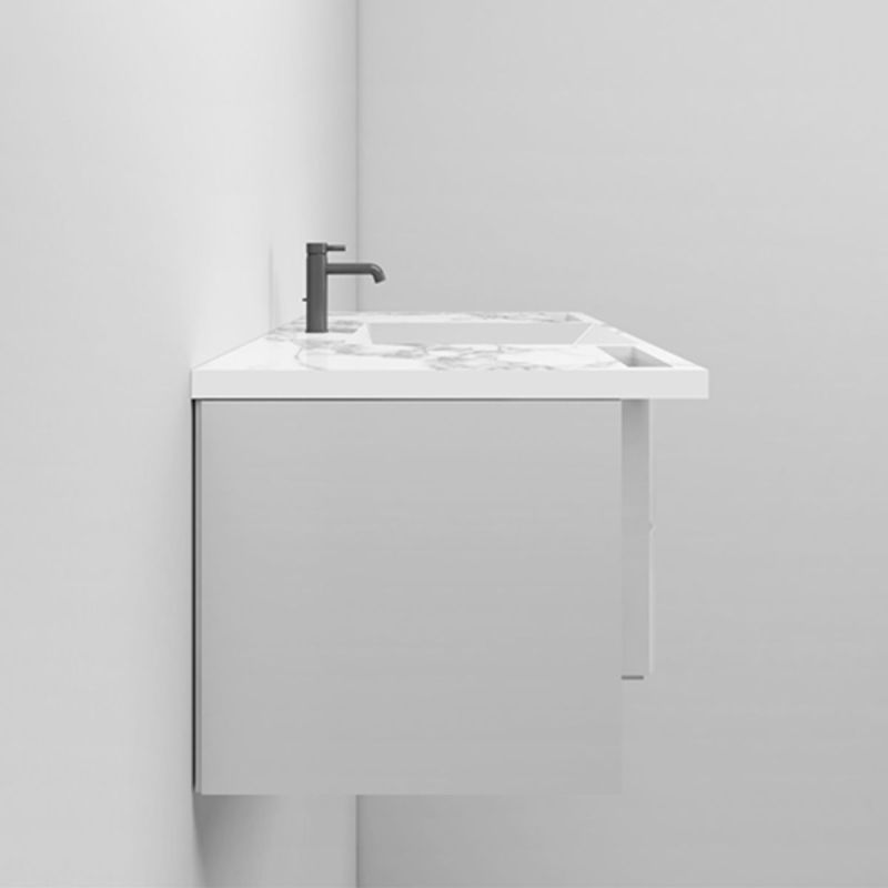 Die glänzend weiße Oberfläche mit feinen Maserungen, typisch für den Carrara Arabescato-Marmor, verwandelt das Waschbecken in ein dekoratives Highlight. Jedes Detail der marmorierten Optik verleiht Tiefe und Eleganz, verstärkt durch die schützende Gelcoat-Schicht, die den Glanz intensiviert und überlegenen Schutz gegen Flecken, Feuchtigkeit und Abnutzung bietet. Premium-Ästhetik trifft auf eine angenehme Haptik und bemerkenswerte Langlebigkeit im täglichen Gebrauch.