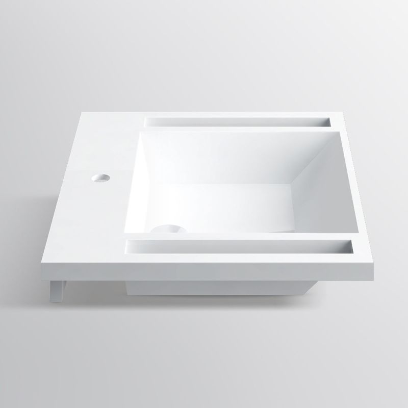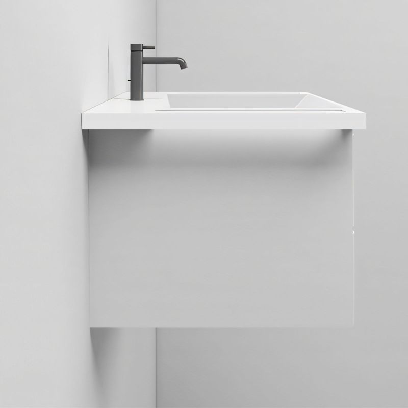 Das Waschbecken besteht aus Mineralguss – ein Material, das für seine Widerstandsfähigkeit gegenüber Feuchtigkeit, Kratzern und Flecken bekannt ist. Es garantiert eine langanhaltende Nutzung und bewahrt sein makelloses Aussehen auch bei intensiver Beanspruchung. Die Oberfläche fühlt sich angenehm an und ist besonders hygienisch – ideal für ein funktionales Badezimmer.