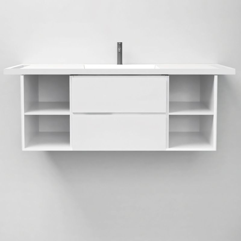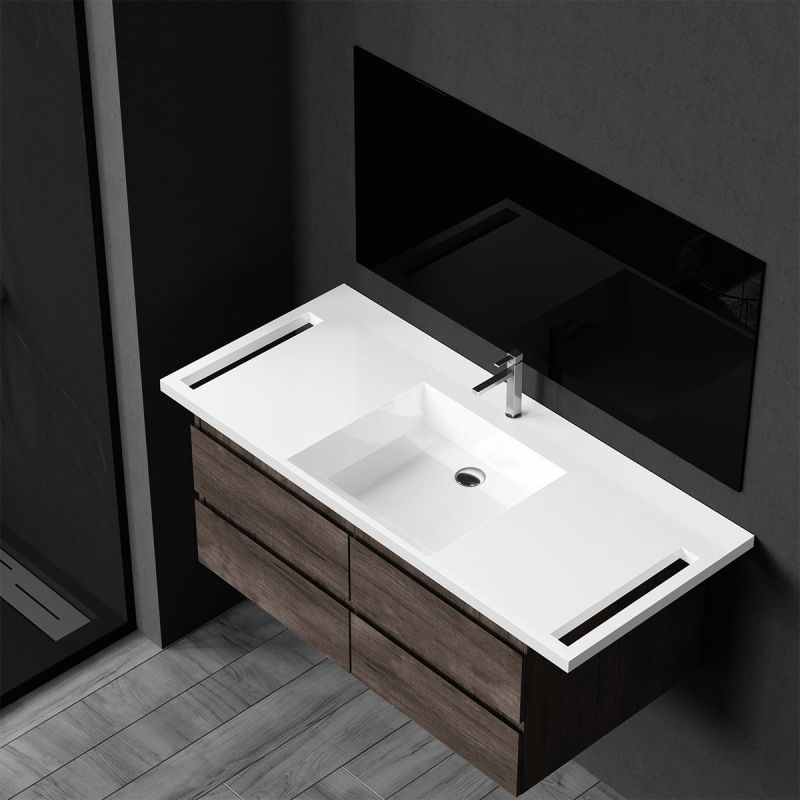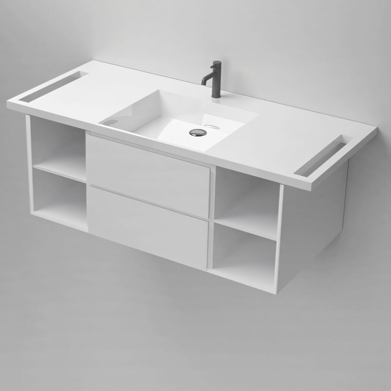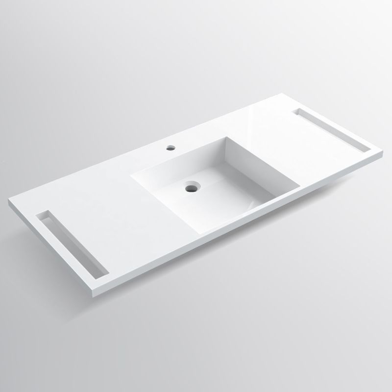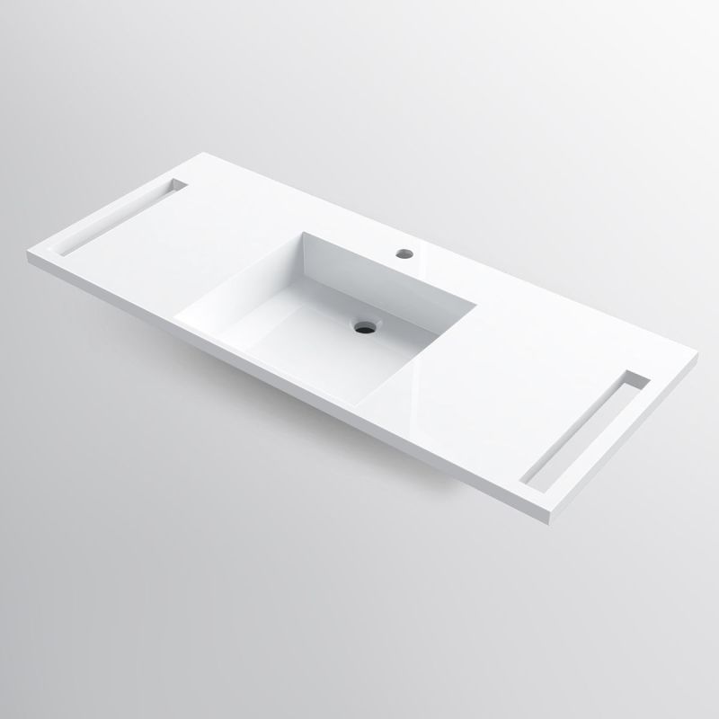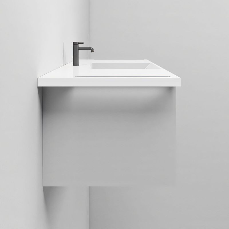 Gefertigt aus hochwertigem Mineralguss, ist das Waschbecken beständig gegen Feuchtigkeit, Kratzer und Flecken. Die wandhängende Montage unterstreicht das moderne und klare Erscheinungsbild, erleichtert die Reinigung und maximiert den Raum unter dem Becken.