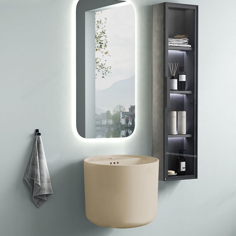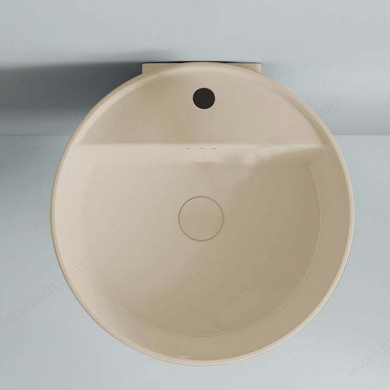 Das runde Design des Waschbeckens (45x45x38 cm) erzeugt ein Gefühl von Fließfähigkeit und visueller Behaglichkeit. Weiche Linien und ausgewogene Proportionen ergänzen perfekt ein ordentliches, funktionales und einladendes Badezimmer.