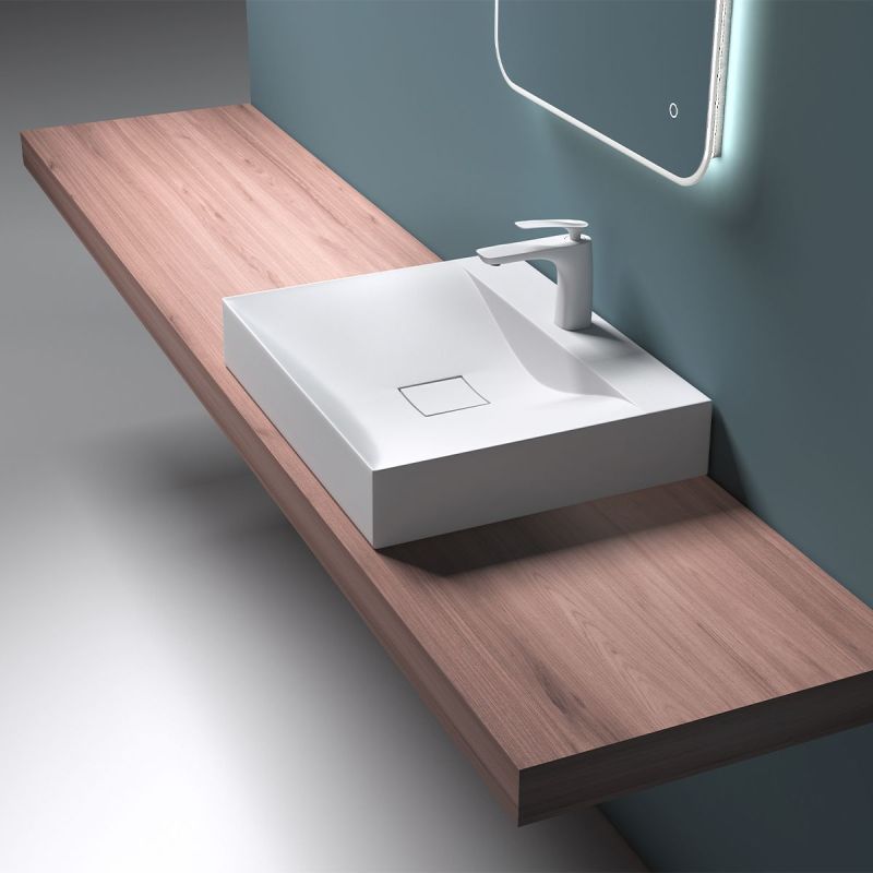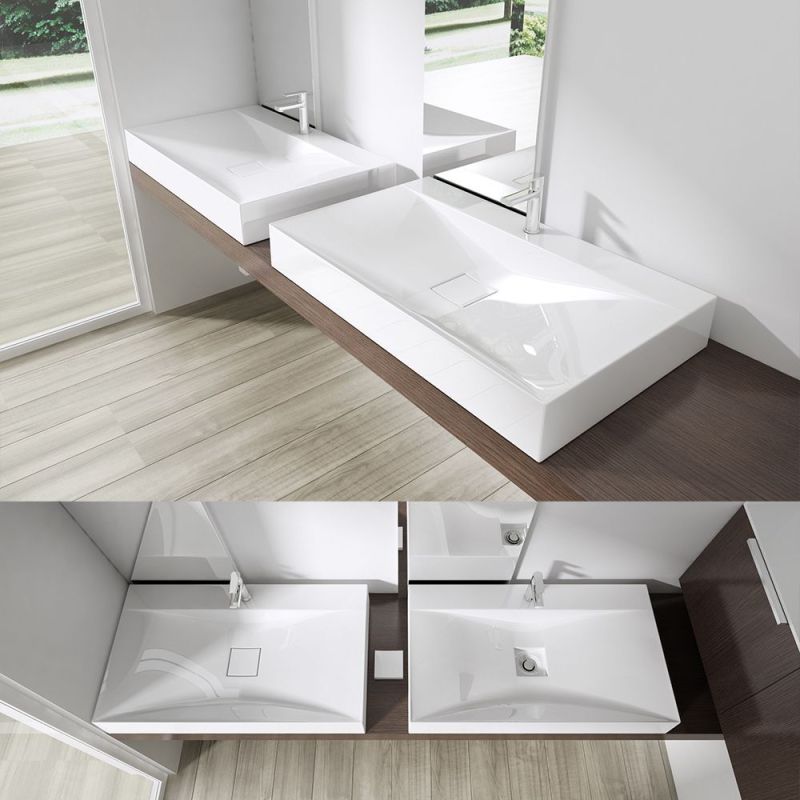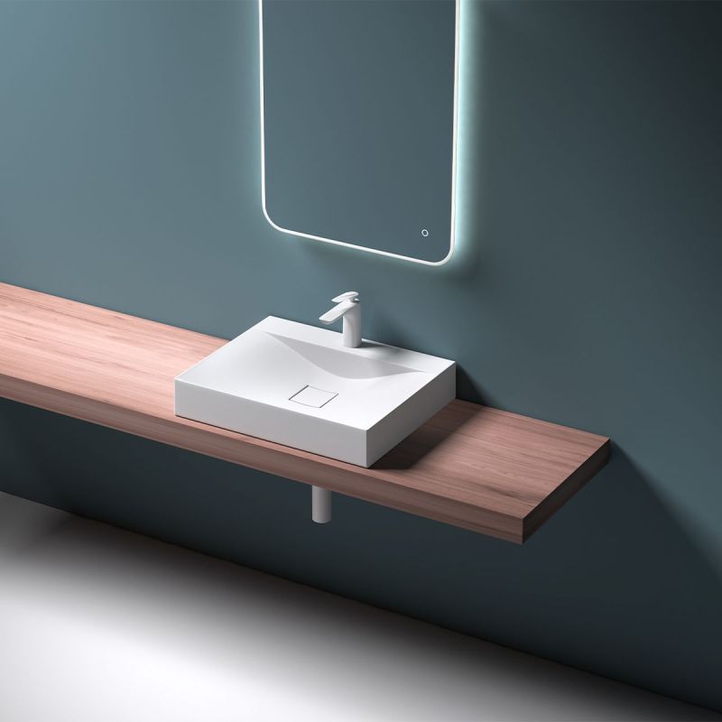Waschbecken EGO 810, glänzend Weiß, , 60, 80 oder 100 x 48 cm, Aufsatz- oder Wandmontage, Marmorkomposit