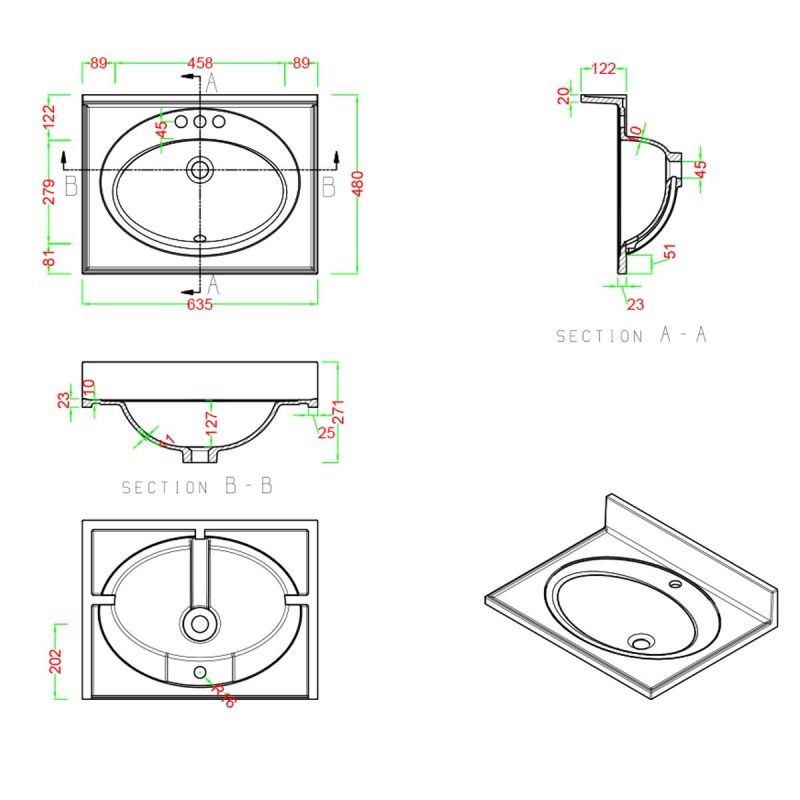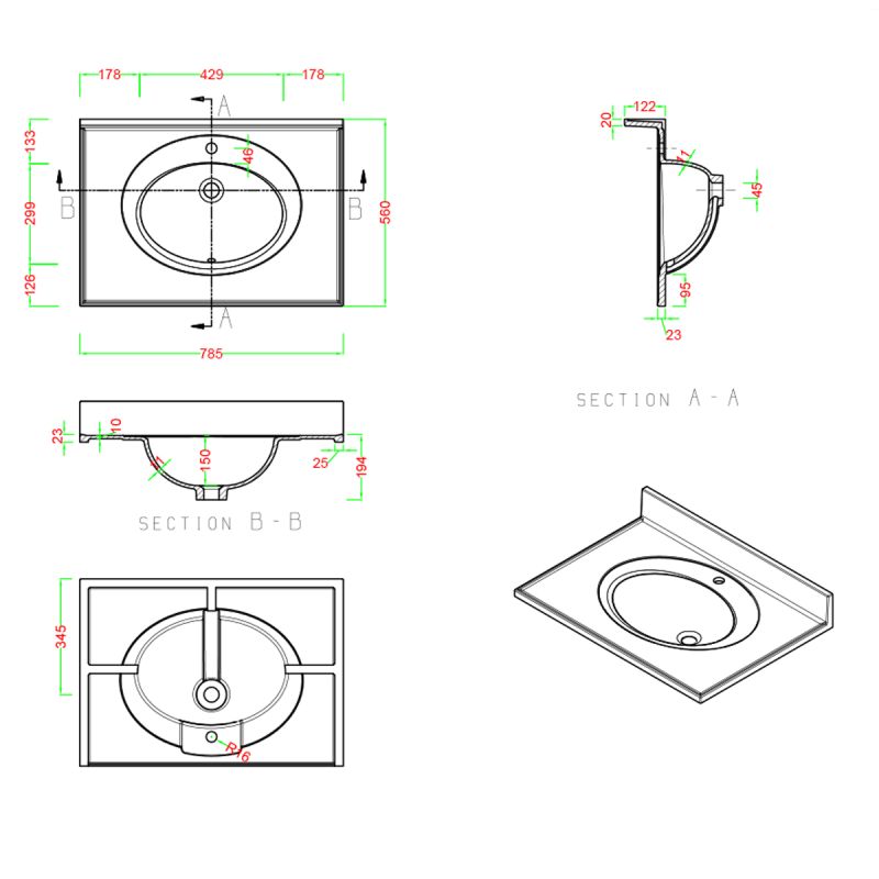 Effektiver Schutz und praktische Montage – Der integrierte Rand verhindert Spritzwasser an der Wand, während die Halbeinbau-Montage Stabilität und eine moderne, gut integrierte Optik im Badmöbel bietet.