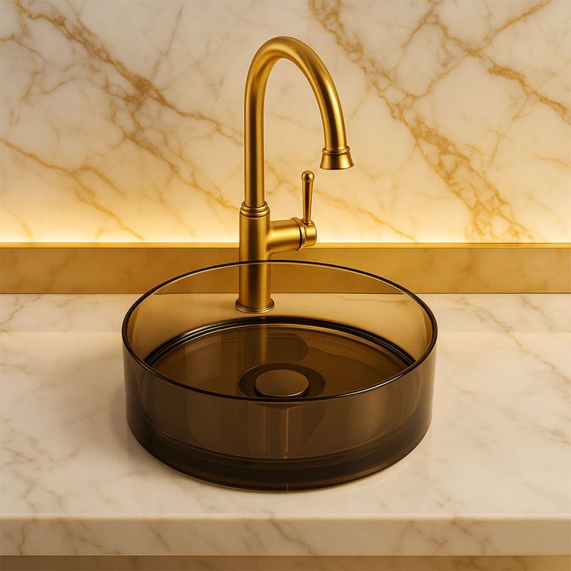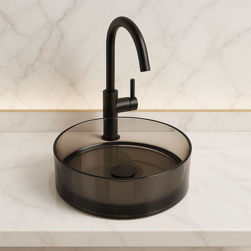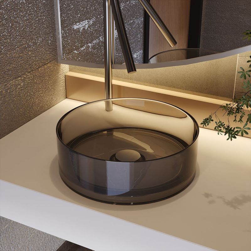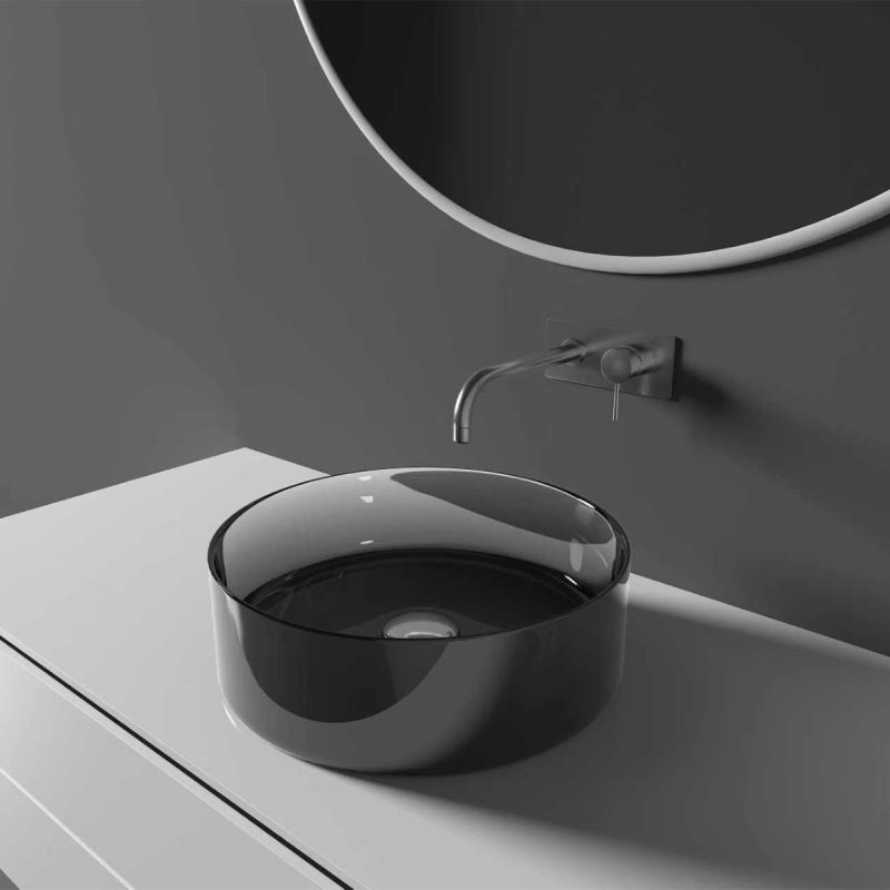 Spektakuläres und exklusives Design – Die runde Form und die transparente Oberfläche erzeugen einen visuellen Tiefeneffekt und verleihen dem Waschbecken eine zentrale ästhetische Wirkung.