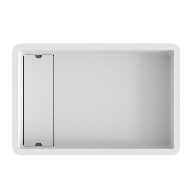 Ohne Hahnloch und Überlauf – ideal für individuell konfigurierte Armaturen auf der Arbeitsplatte oder Wandmontage, betont die Reinheit des Designs.