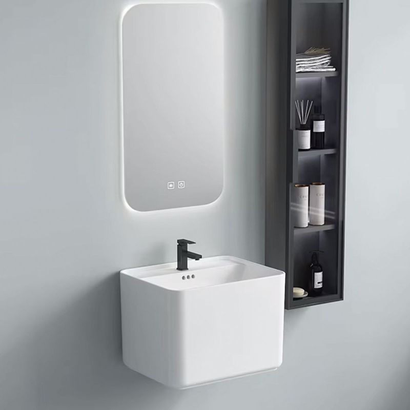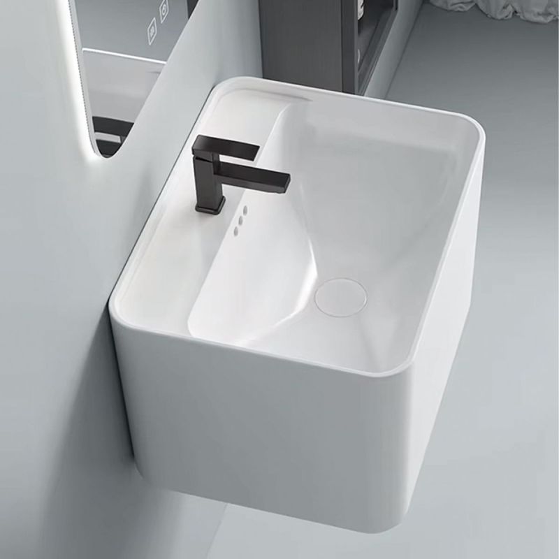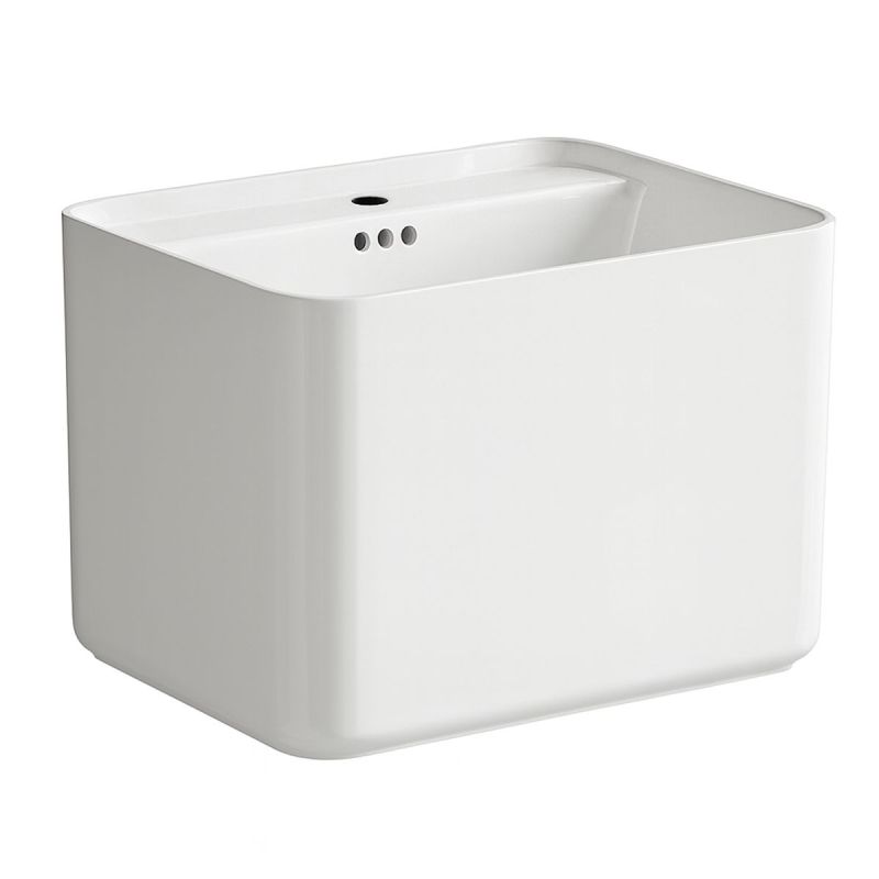 Waschbecken, glänzend Weiß, wandhängende Montage, mit Armaturenloch 50x40 cm, Alfonso