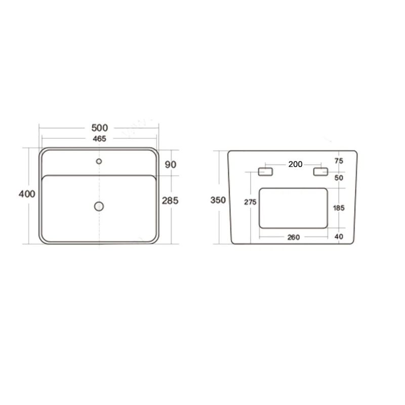 Mit kompakten Maßen von 50x40 cm und wandhängender Montage ermöglicht dieses Waschbecken eine luftige, effiziente Gestaltung und ist ideal für Gästebäder und kleine Räume.