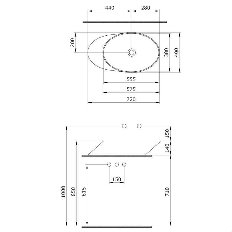 Waschbecken Alicia, Aufsatzmontage, 53x46 cm, glänzend Schwarz, Royalty Line by Ego