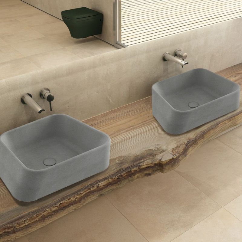 Waschbecken Maluma, Aufsatzmontage, 51x42 cm, keramischer Deckel, mattes Zementgrau, Royalty Line by Ego