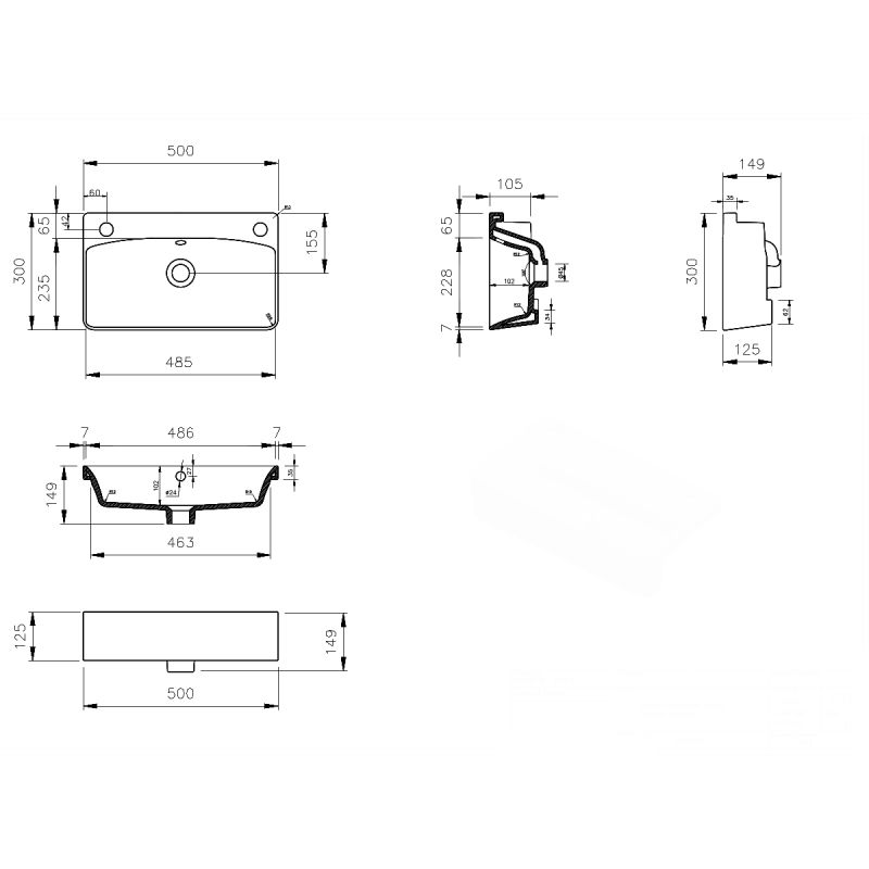 Waschbecken Jason, Halb-Einbaumontage, 50x30 cm, Glänzend Weiß, Royalty Line by Ego