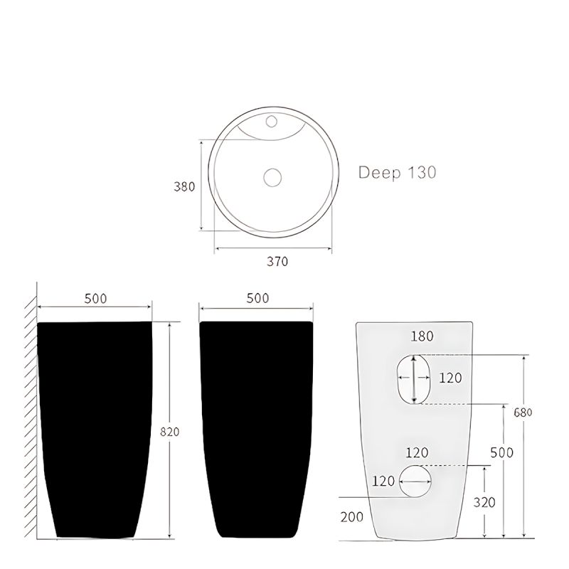 Waschbecken-Typ: Freistehend Farbe: Schwarz Oberfläche: Matt Höhe: 82 cm Durchmesser: 50 cm Material: Sanitärkeramik Überlaufloch: Ja Montage: Bodenmontage