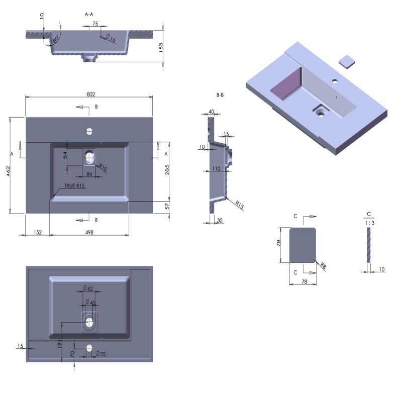Durch den Einsatz modernster Fertigungstechniken entstanden präzise und filigrane Kanten im 90-Grad-Winkel. Die klaren Linien und präzisen Formen zeichnen dieses Material aus und machen es ideal, um spektakuläre Waschbecken in jeder Form zu schaffen.