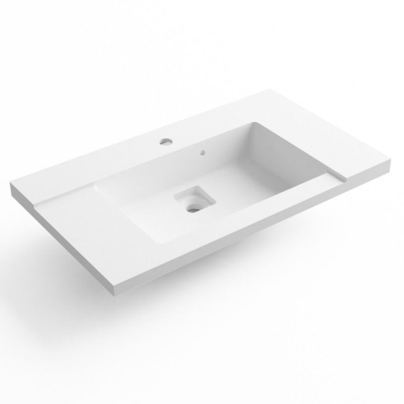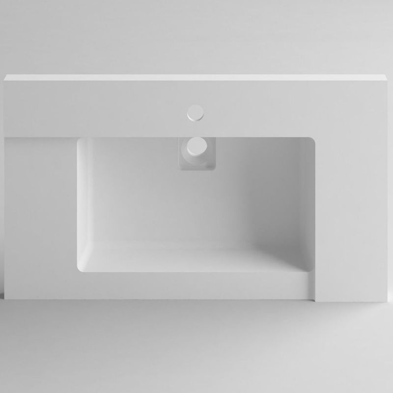 Das Waschbecken ist mit einem Armaturloch und einem Überlauf ausgestattet.