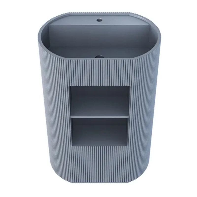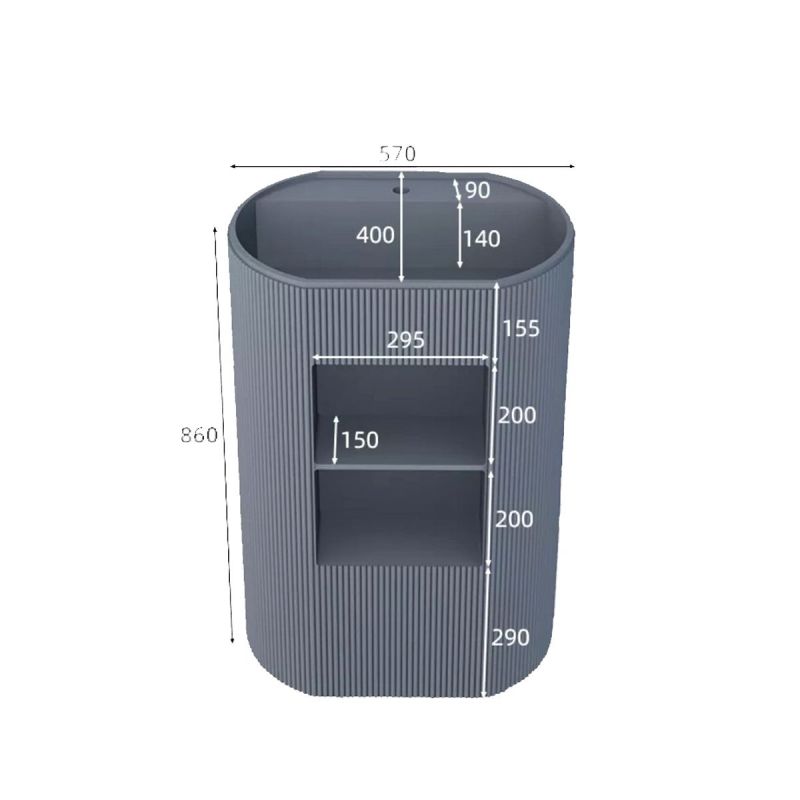 Mit einer Höhe von 86 cm, einer Länge von 57 cm und einer Breite von 40 cm bietet das Vizini-Waschbecken großzügigen Raum für die tägliche Nutzung und gewährleistet gleichzeitig eine perfekte Ergonomie. Der Bodenaufbau sorgt für Stabilität und erleichtert die Installation in verschiedenen Badezimmerkonfigurationen.