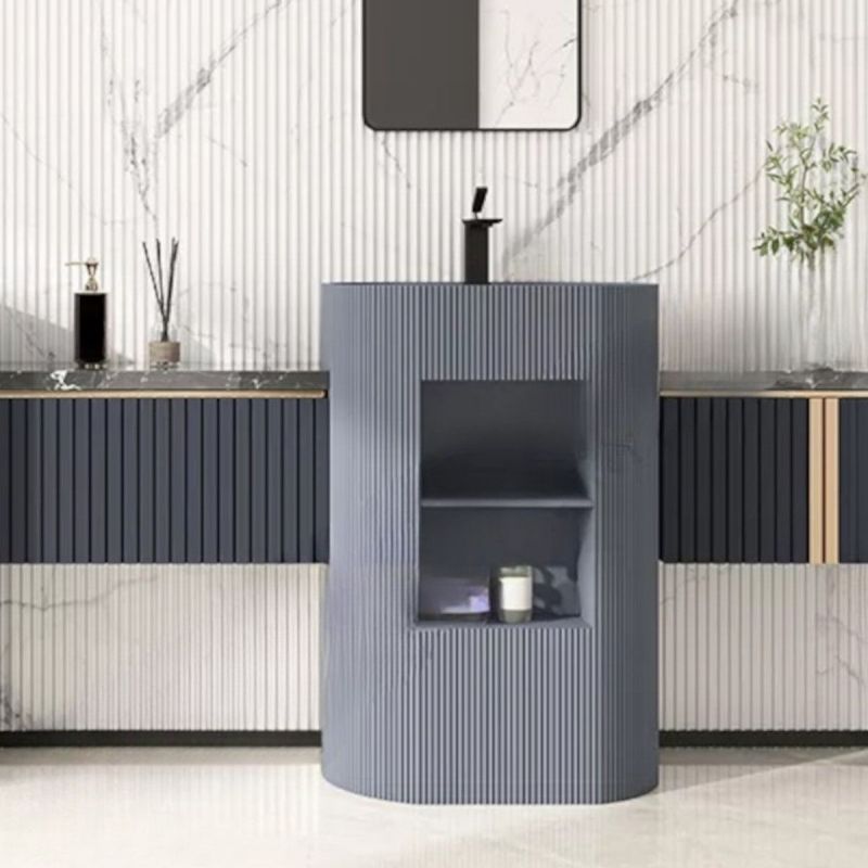 Mit seiner grauen Betonoptik integriert sich das Vizini-Waschbecken harmonisch in verschiedene Einrichtungsstile, von industriell bis minimalistisch. Die klaren Linien und seine elegante Form machen es zu einem Blickfang im Raum, sodass Sie Ihre Kreativität durch passende Accessoires und Dekorationen ausdrücken können.