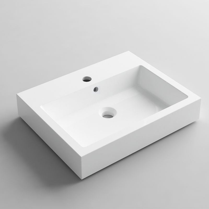 Das Waschbecken ist mit einem Hahnloch und einem Überlauf ausgestattet.