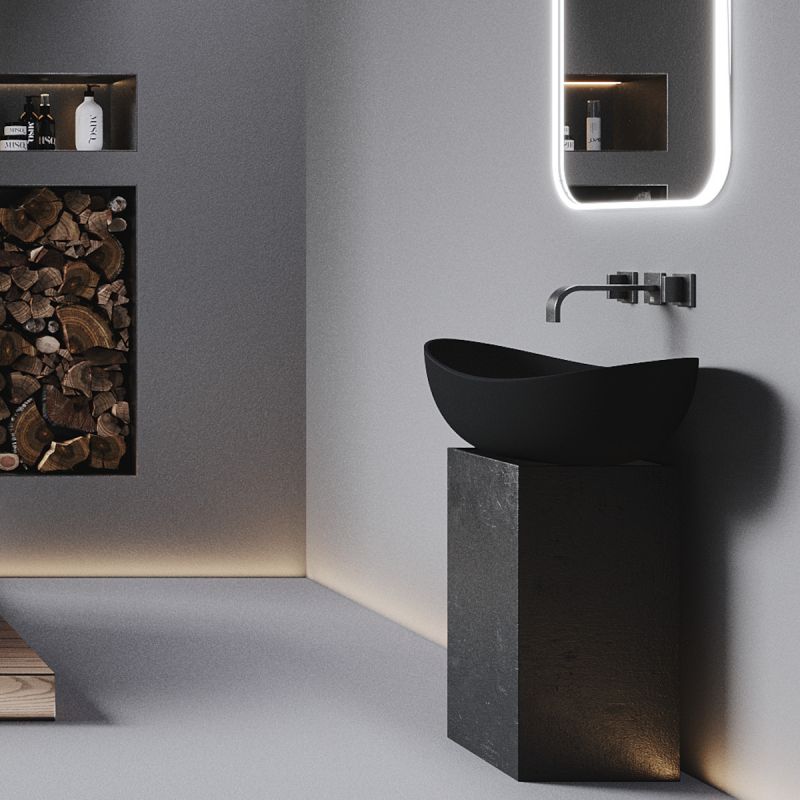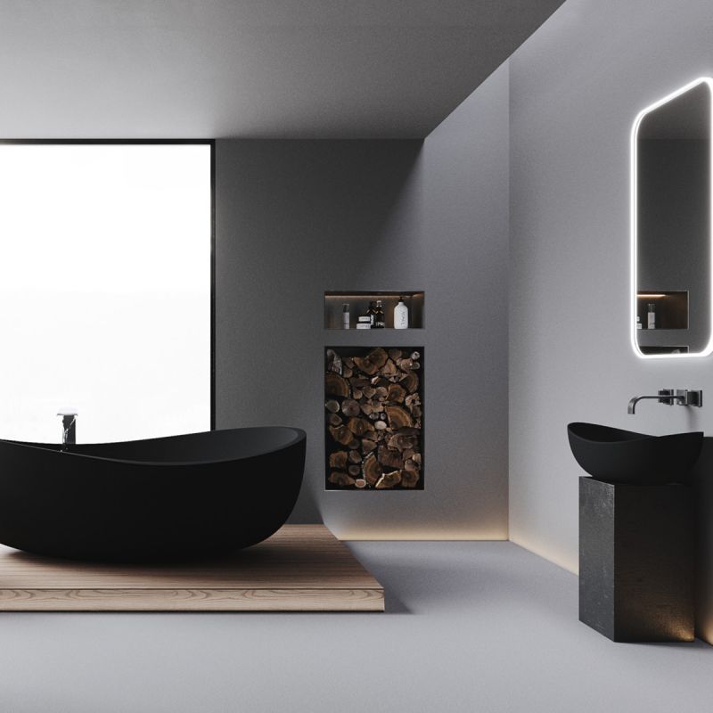 Minimalistisches Design und pure Eleganz: Das Mineralguss-Waschbecken aus der Lirio-Kollektion überzeugt durch seine klaren Linien und die Tiefe des mattschwarzen Farbtons. Die glatte Oberfläche und das reduzierte Design schaffen eine luxuriöse Atmosphäre und verwandeln das Badezimmer in einen stilvollen Raum.