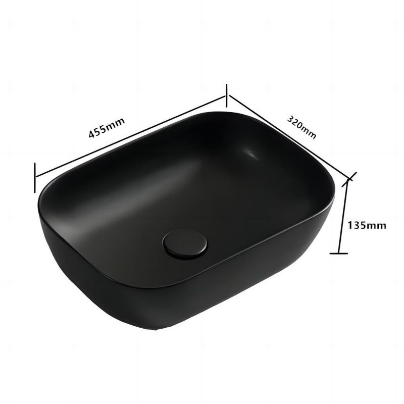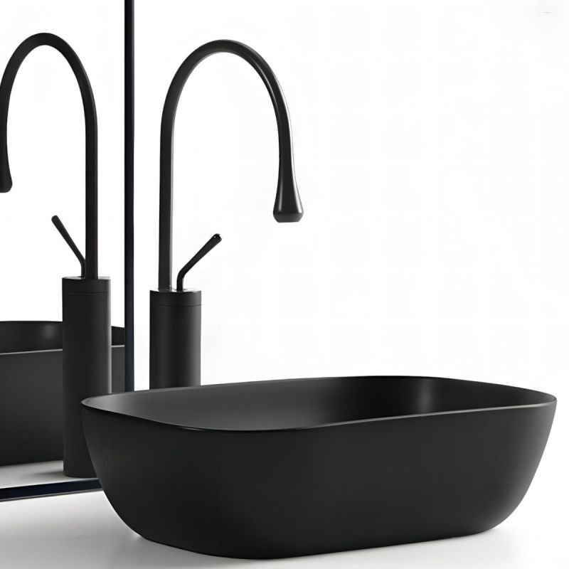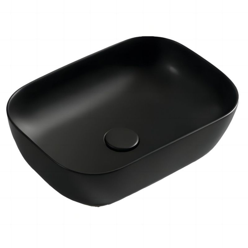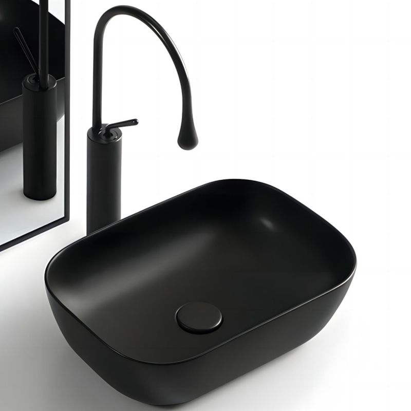 Waschbecken, Mattschwarz, Power Colour, Maße 45,5x 32 cm, Sanitärkeramik, Aufsatzmontage, Nicoli
