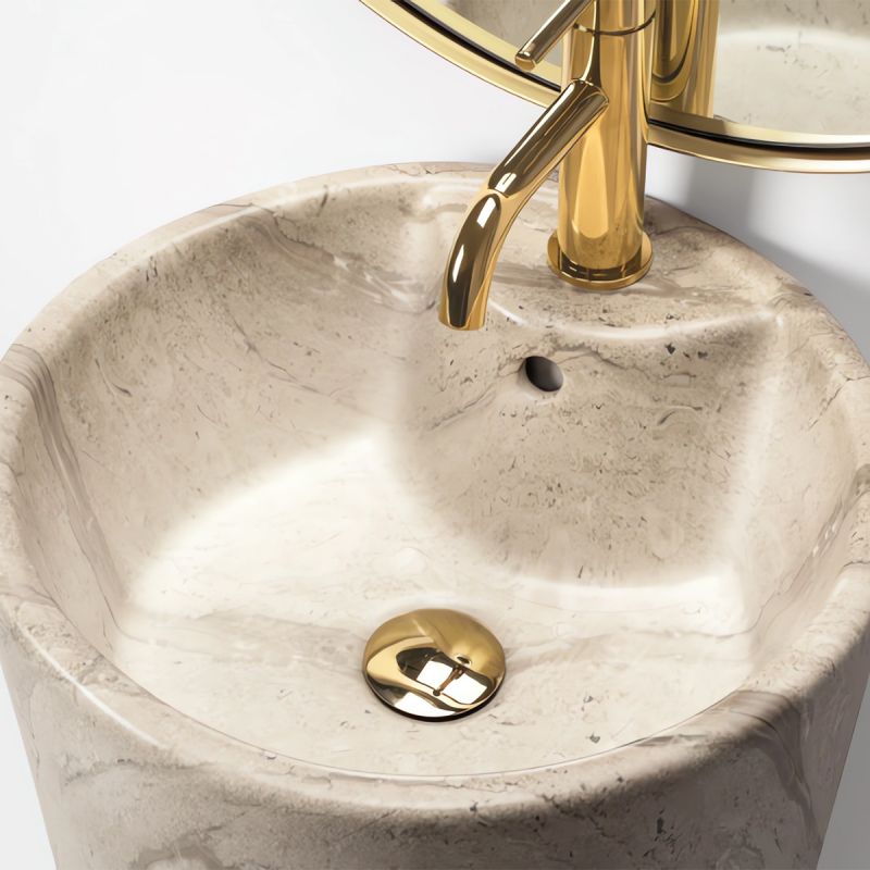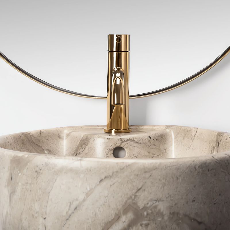 Das Naturstein-Finish verleiht dem Waschbecken Lucia Stone eine besondere Eleganz und natürlichen Charme. Jedes Detail dieses Waschbeckens strahlt zeitlose Schönheit und einen anspruchsvollen Stil aus, der unser Engagement für Qualität und hochklassiges Design unterstreicht.
