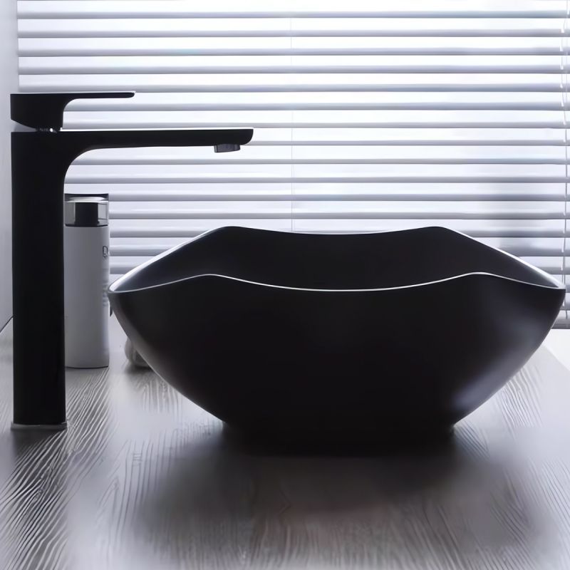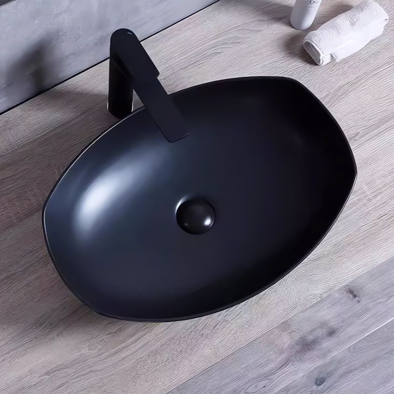 Mit seinen Maßen von 57x40x15.5 cm und der eleganten Aufsatzmontage bringt dieses Waschbecken stilvolle Modernität in jedes Badezimmer. Die matte schwarze Farbe und das makellose Finish fügen sich harmonisch in verschiedenste Einrichtungsstile ein und verleihen dem Raum eine raffinierte, zeitlose Atmosphäre.