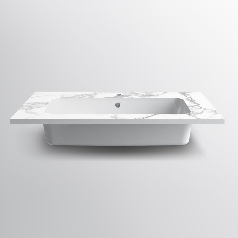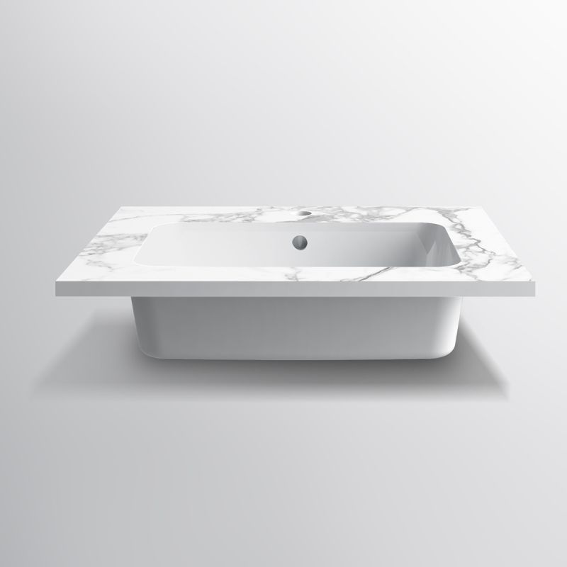 - Wasserfest: Mit einer Wasseraufnahme von weniger als 0,01 % ist das Waschbecken vollständig wasserabweisend und verhindert Flecken und Schäden.