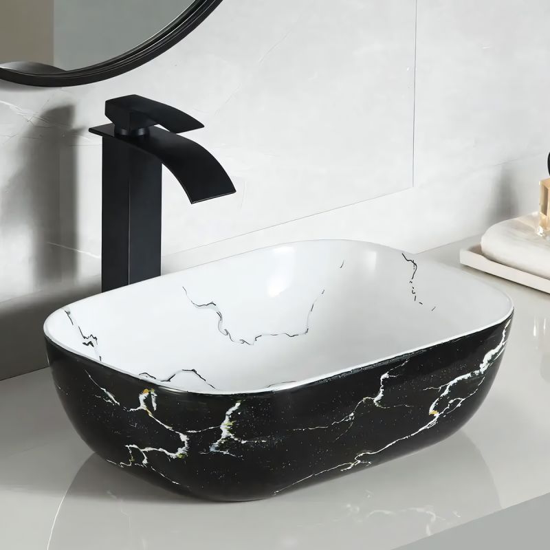 - Beeindruckender Farbkontrast: Das weiße Marmor-Innenfinish strahlt Reinheit und Frische aus, während die schwarze Marmor-Außenseite eine exklusive, dramatische Note verleiht. Zusammen ergeben sie einen eleganten, zeitgemäßen Look.