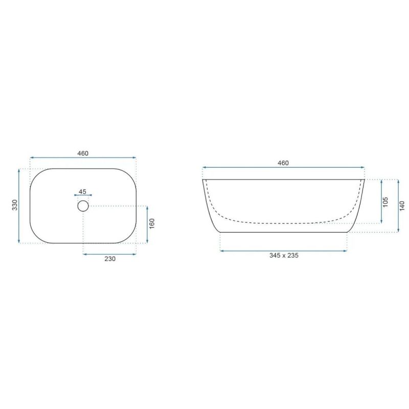 - Ergonomische Form: Mit seinen Maßen von 46x33 cm bietet das Waschbecken sowohl Komfort als auch Vielseitigkeit und passt perfekt in große ebenso wie in kompakte Badezimmer.
