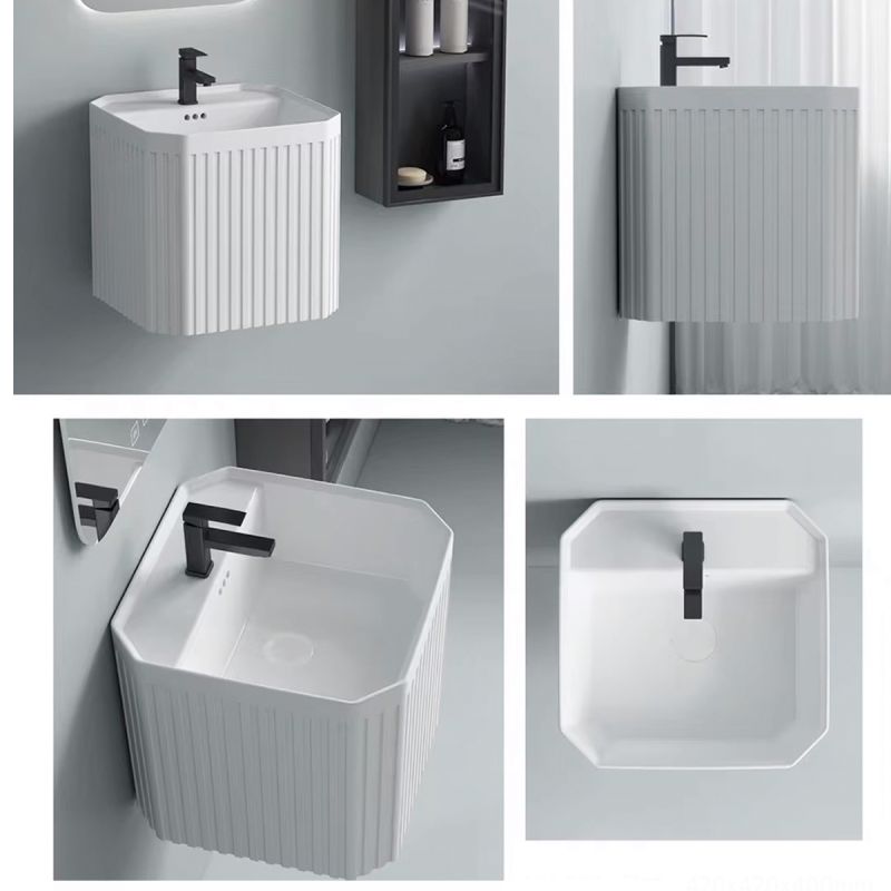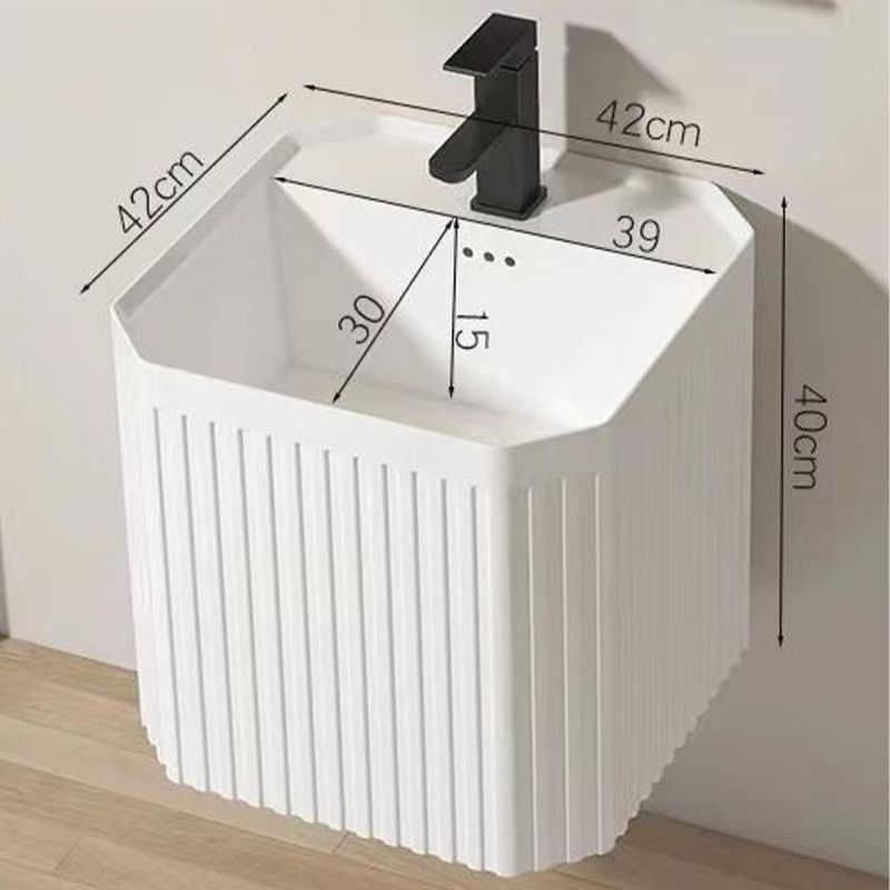 Wandhängende Waschbecken, mit Hahnloch, 42x42x40 cm, Sanitärkeramik, glänzend Weiß, Adele