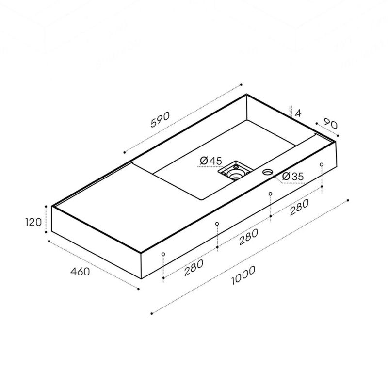 Die versteckte Ablaufgarnitur, das makellose mattweiße Finish und die großzügigen Abmessungen machen dieses Waschbecken zum Mittelpunkt jedes modernen Badezimmers und verleihen eine exklusive und elegante Note.