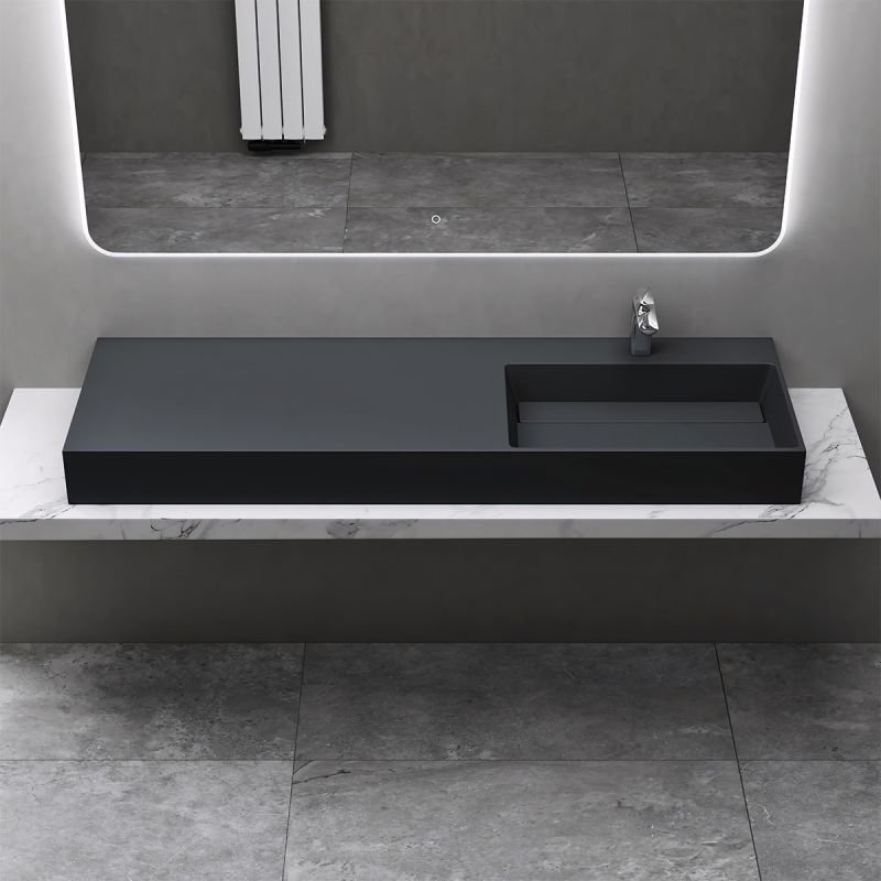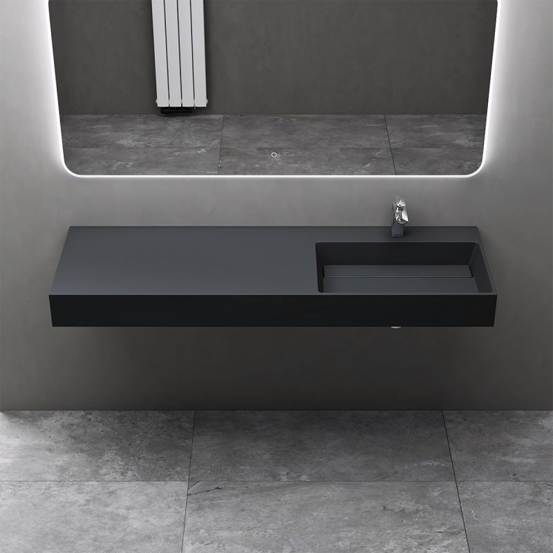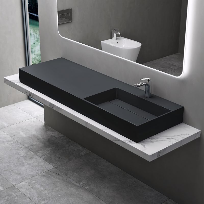Modernes und vielseitiges Design – anthrazitfarbenes Waschbecken zur Aufsatz- oder Wandmontage, ideal für moderne Badezimmer. Klare Linien, mattes Finish, minimalistischer Stil. Großzügiger Raum und effiziente Organisation – 150 cm lang, 48 cm breit, mit Ablagefläche auf der linken Seite und Armaturenloch rechts. Verdeckter Ablauf mit abnehmbarem Deckel – sauberes, elegantes Design, das den Ablauf geschickt kaschiert und unangenehme Gerüche reduziert. Hergestellt aus langlebigem Marmorverbundstoff, leicht zu reinigen, flecken- und kratzfest.