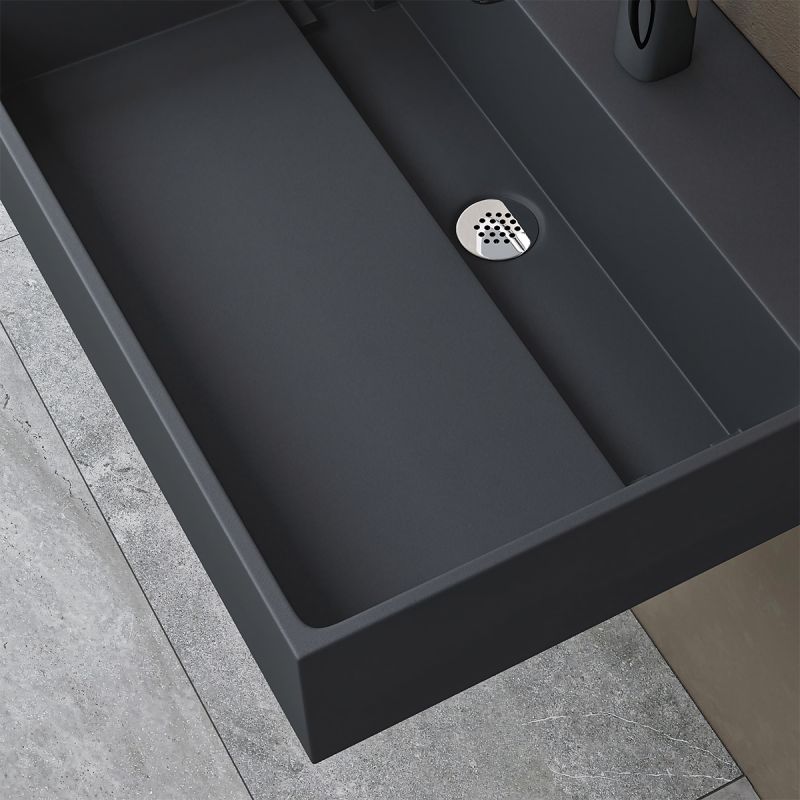 Waschbecken, Anthrazit, 150x48 cm, Marmorverbundstoff, zur Aufsatz- oder Wandmontage, Matt Anthrazit, verdeckter Ablauf, EGO 12R