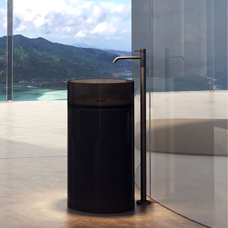 Das Waschbecken Sole beeindruckt durch seine schlichte, aber kraftvolle Form und erzeugt damit einen außergewöhnlichen visuellen Effekt. Das transluzente Schwarz verleiht ihm eine elegante, geheimnisvolle Ausstrahlung, spielt mit dem Licht und verleiht dem Raum eine besondere Tiefe. Dieses Waschbecken ist nicht nur ein Sanitärobjekt, sondern ein stilistisches Statement – perfekt sowohl für minimalistisch gestaltete als auch für avantgardistische Bädezimmer.