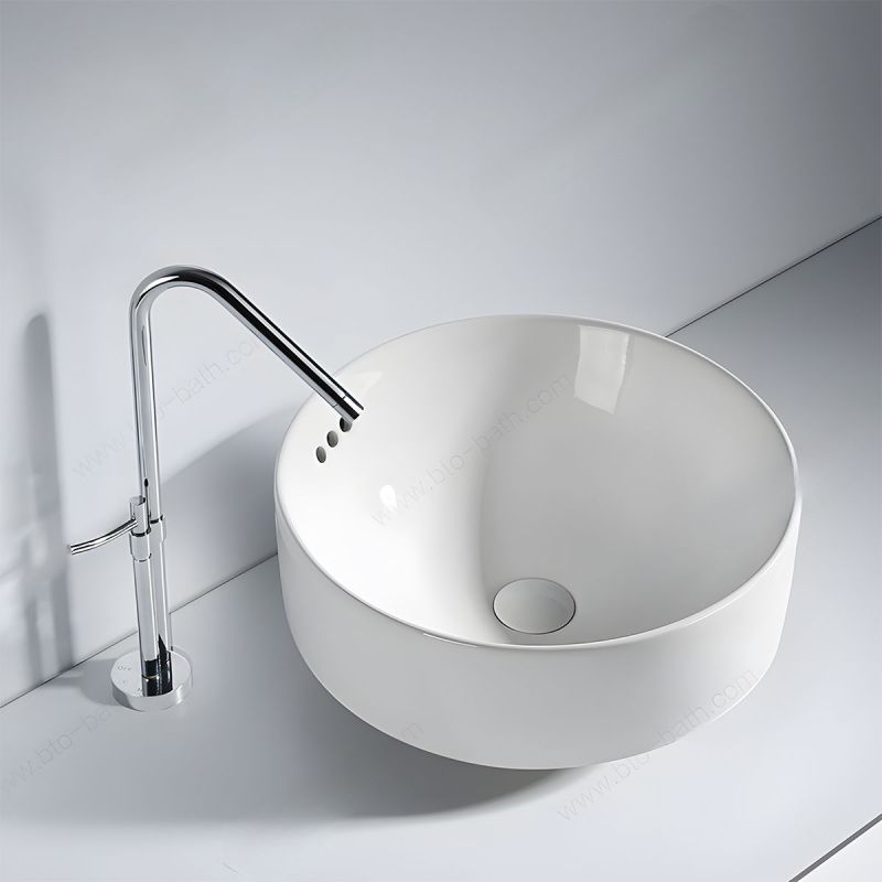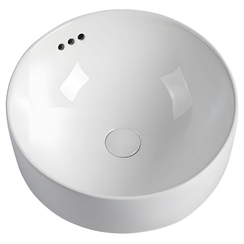Mit einem Durchmesser von 41 cm und 20 cm Höhe bietet das Waschbecken ein harmonisches Erscheinungsbild. Die klaren Linien sorgen für ein Gefühl von Weite und Ruhe – passend für kleine wie großzügige Bäder. Das glänzende Weiß verstärkt die Helligkeit und passt in jedes Farbkonzept.