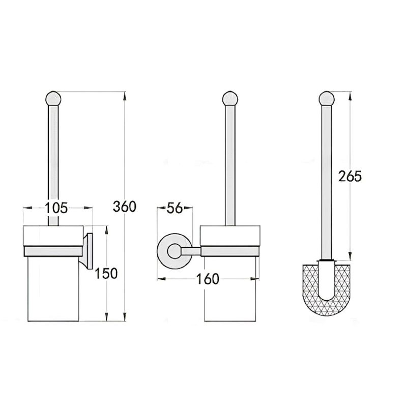 Das Design zur Wandmontage oder als hängende Variante unterstützt eine effiziente Raumnutzung und erleichtert die Bodenreinigung, während die Bürste durch ihre ergonomische Form und widerstandsfähigen Borsten eine gründliche und hygienische Toilettenreinigung ermöglicht.